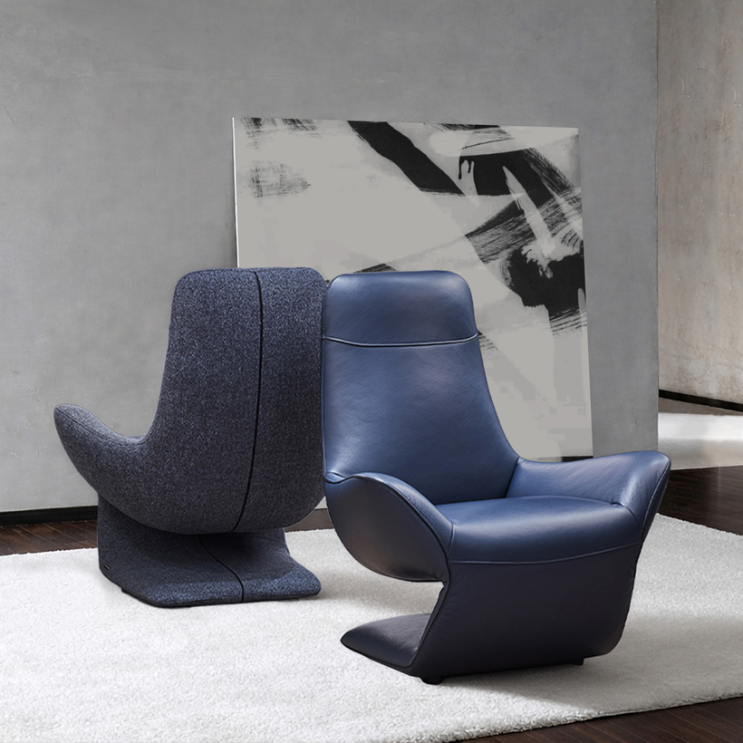 This sculptural armchair design is intentionally slender, balancing visual lightness with mechanical strength. The controlled flex ensures comfort while providing the necessary support without adding bulk to the product’s profile. The frame is upholstered in leather or textile coverings selected for their resilience, texture, and clarity. Manufacturing is carried out with close attention to line tension, curve continuity, and the precision of every visible junction.